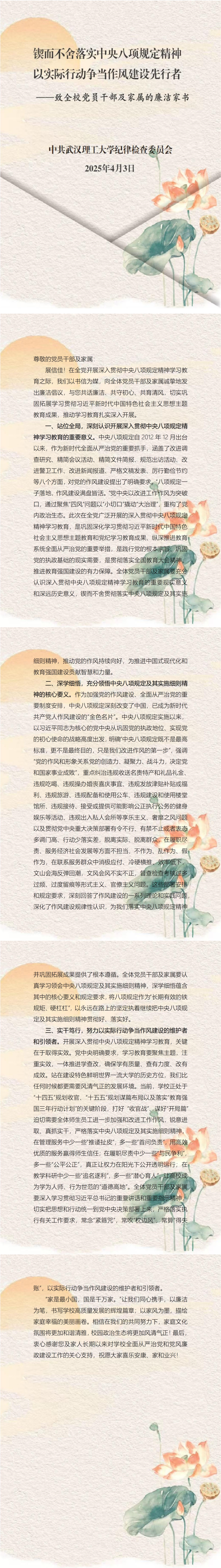 致全公司党员干部及家属的廉洁家书