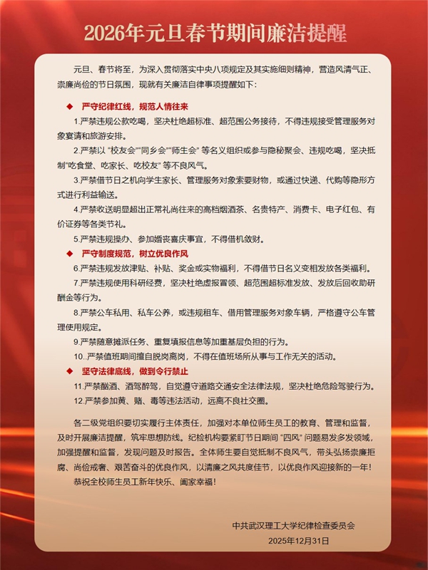 2026年元旦春节期间廉洁提醒