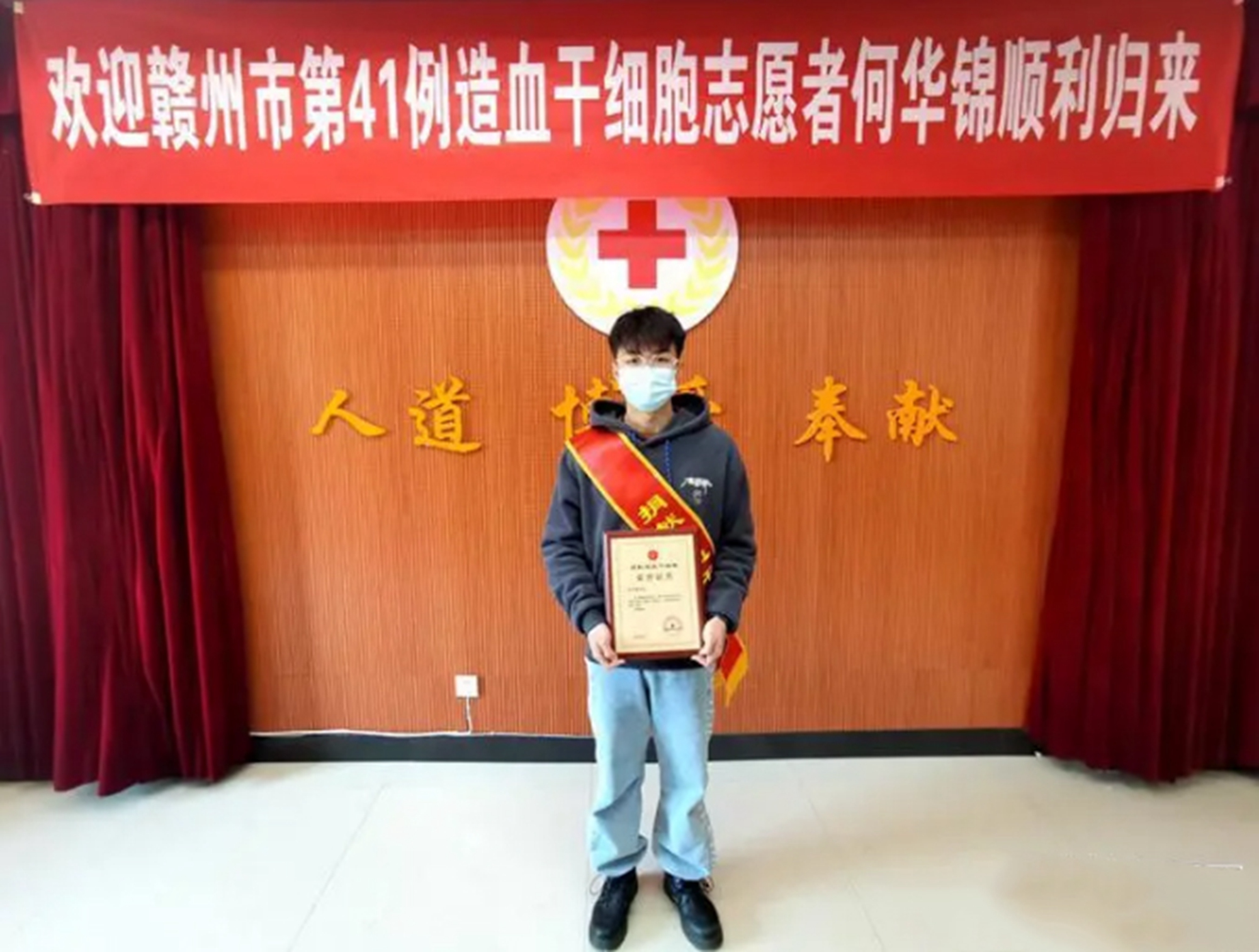 2020年10月12日,何华锦血样与一名14岁的白血病患者白细胞抗原(HLA)高分辨配型成功。直到今年初,何华锦在湖南湘雅医院捐献212毫升造血干细胞混悬液,给患者送去了“救命解药”。至此,何华锦成为赣州市第41例,也是首位“00后”成功捐献造血干细胞志愿者。