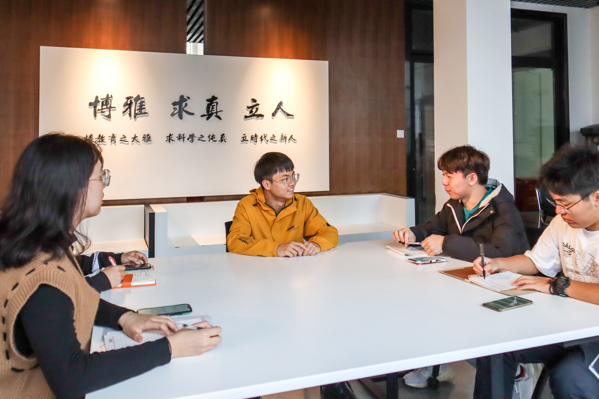 图 接受校园记者采访