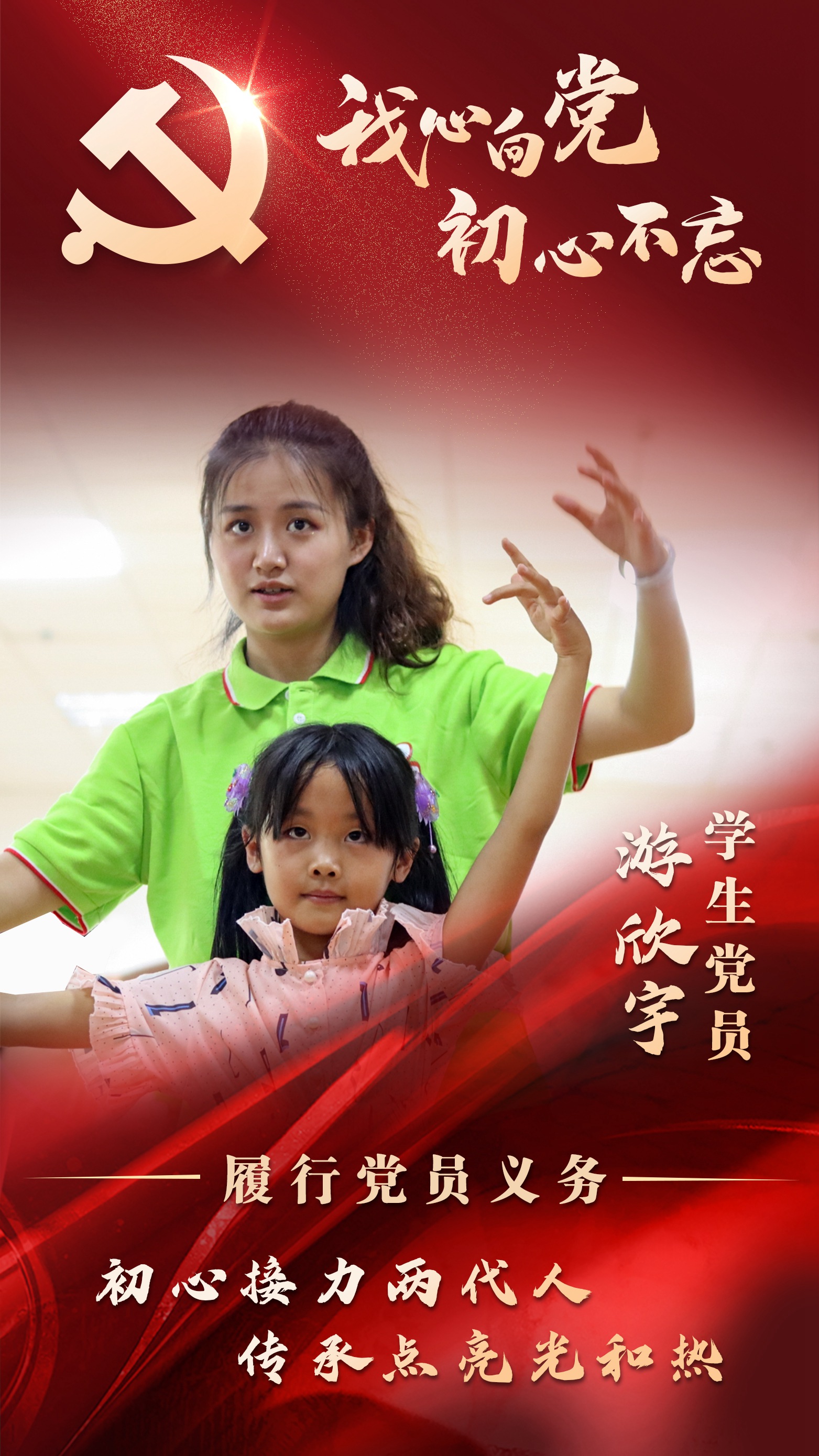 【我心向党·初心不忘】党旗所指,就是党员所向,响应党的号召,就是每名党员的责任和义务。我在父亲老游相约投身脱贫攻坚的经历中,贡献了力量,实现了价值;在履行党员义务的实践中,坚定了初心,构筑了理想。面对新的征程,新的阶段,我将会继续用实际行动,响应党的号召,在服务中继续发光发热。我是游欣宇,我志愿加入中国共产党!