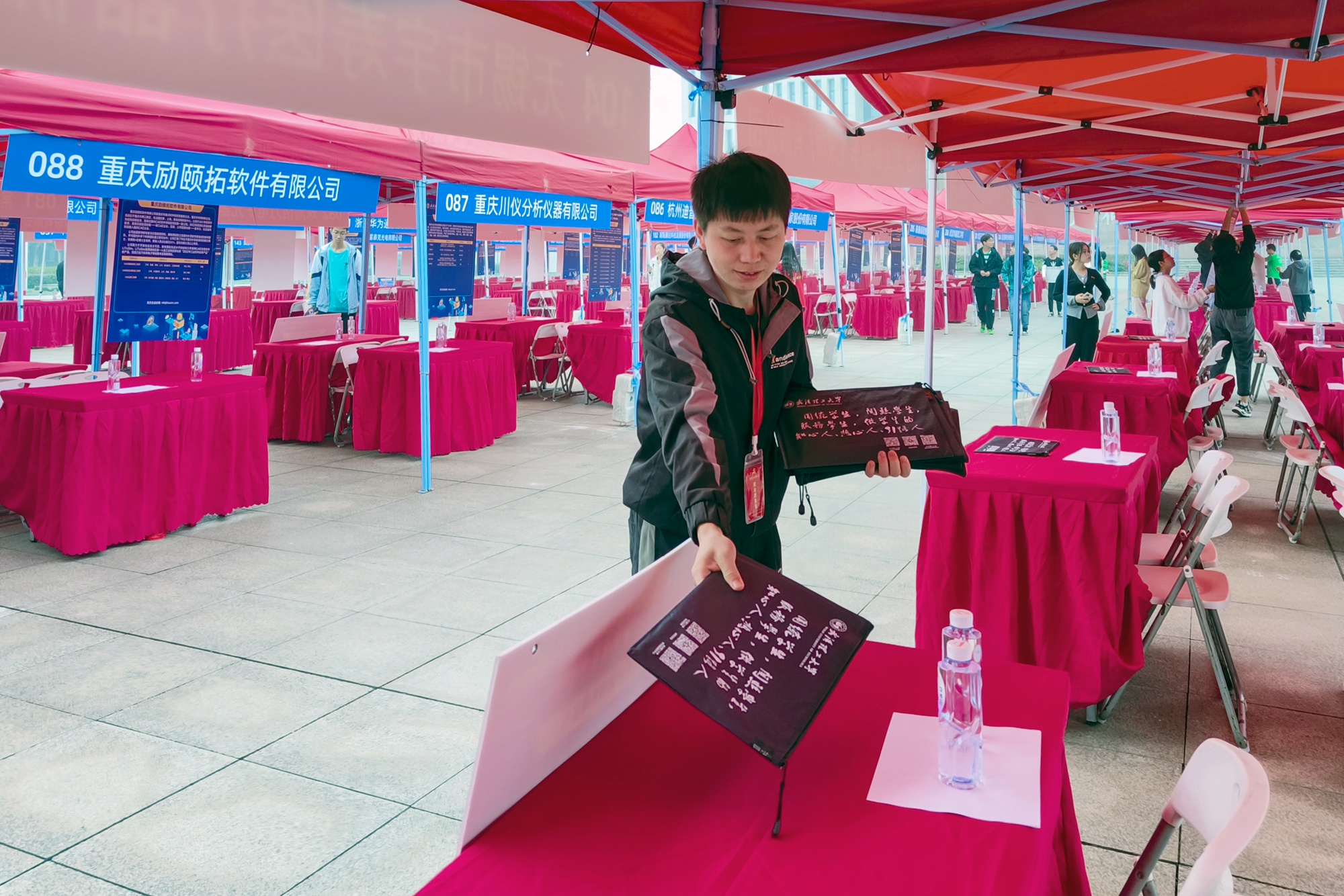 作为就业服务员进行“双选会”场地布置