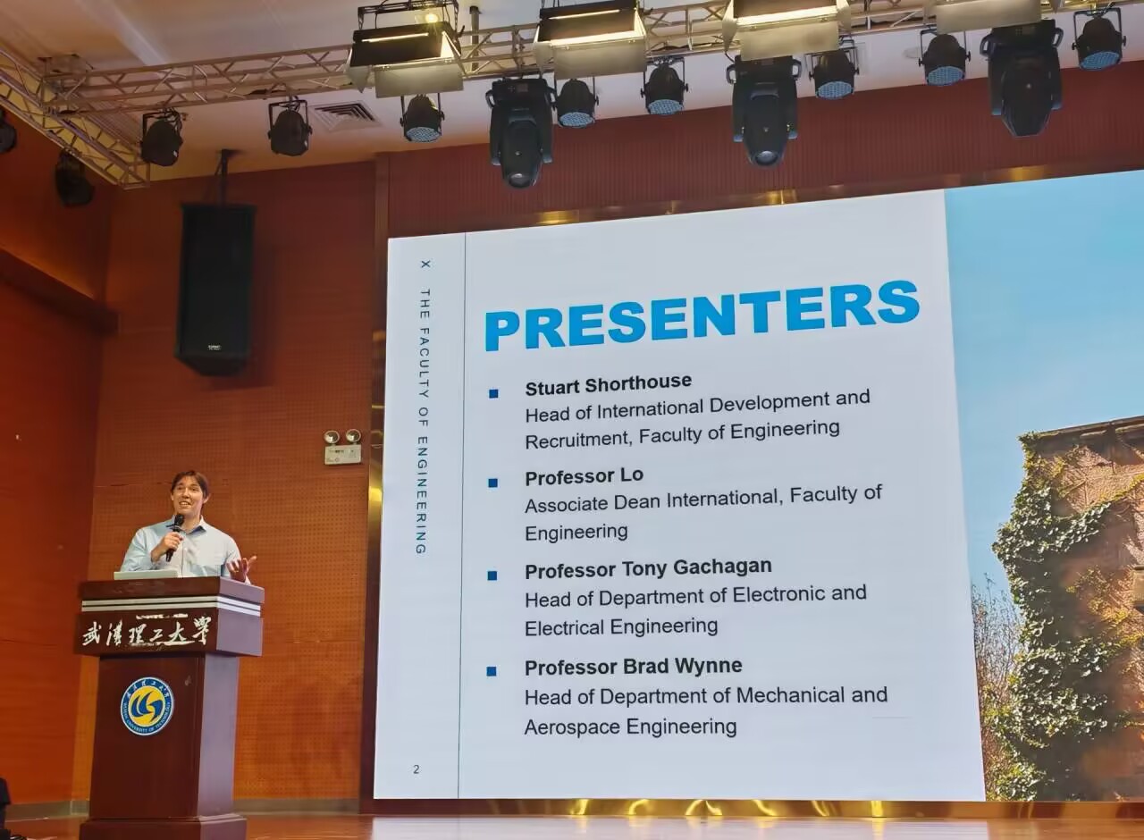 Professors from the University of Strathclyde delivered a presentation to undergraduate and postgraduate students of the school. They provided a brief overview of the university’s academic profile, core research areas, and achievements, with a focus on promoting the undergraduate-postgraduate-PhD joint programs with WHUT. Details were shared on program application requirements, study modes, and training objectives.