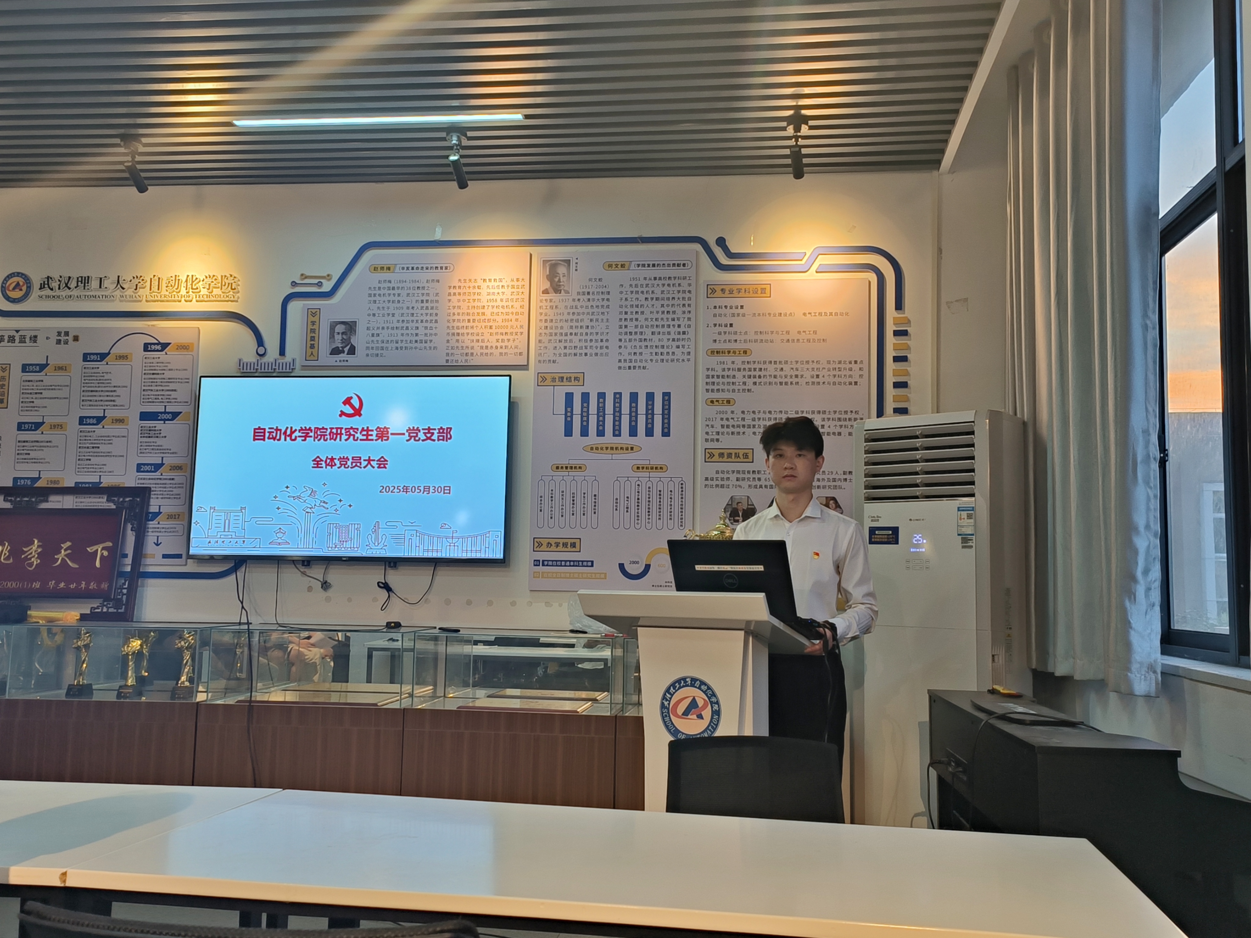 5月30日晚,研究生第一党支部于伟德BV1946官网综合楼文化展厅召开全体党员大会暨弘扬五四精神的党课学习活动。本次会议由党支部书记杨治辉同志主持,全体党员参加。