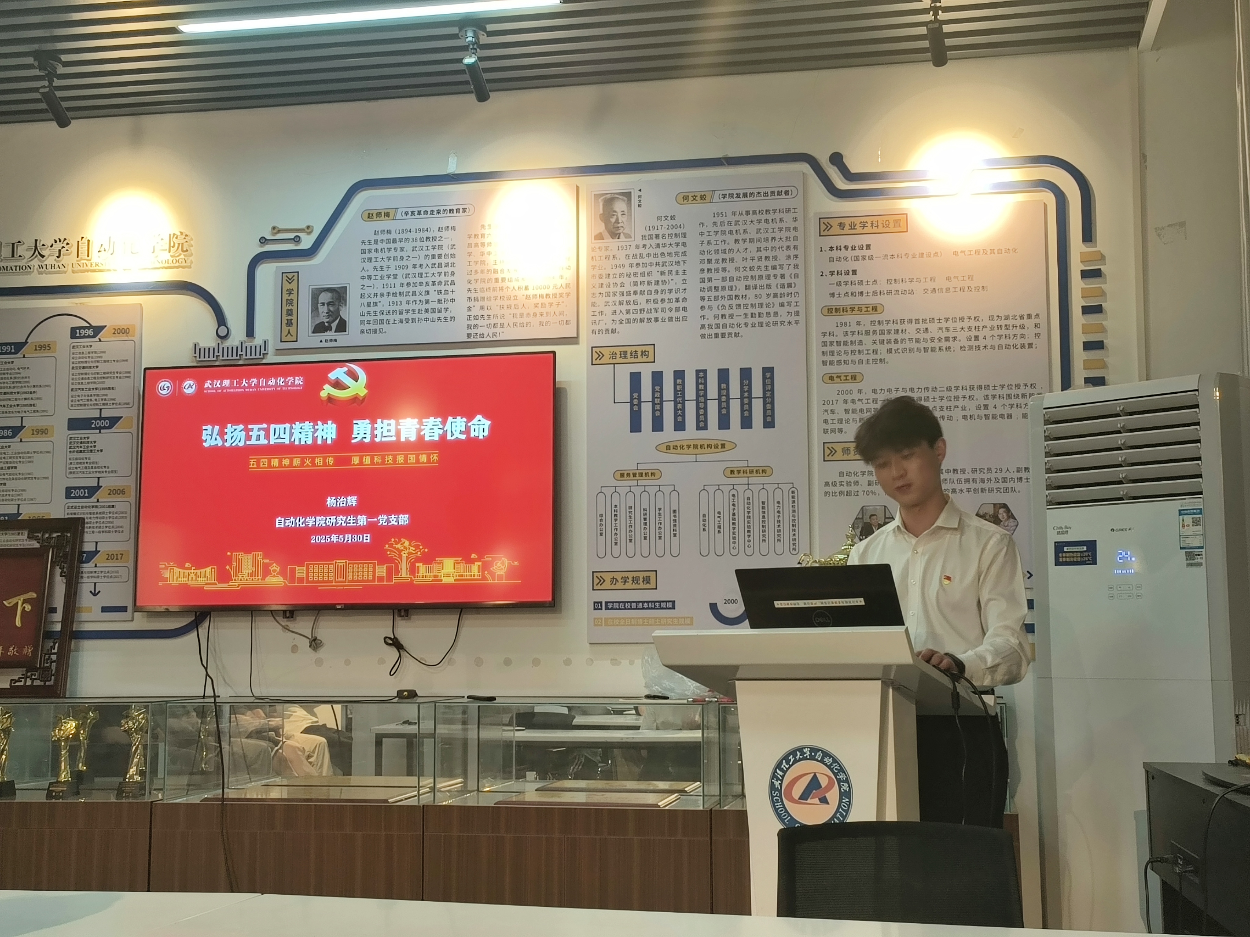 随后,杨治辉同志带领全体支部成员开展了“弘扬五四精神,勇担青春使命”的党课学习活动。他以“走进五四运动,赓续精神血脉”为切入点,将大家的思绪带回到那个风云激荡的年代。他生动地讲述了五四运动的历史背景以及爆发的深刻原因,并深入剖析了五四运动的历史意义。接着,围绕“传承五四精神,青春挺膺担当”这一主题,杨治辉同志借由习近平总书记在纪念五四运动100周年大会上发表的重要讲话,对全体支部成员提出了六个期望。他希望党员们能够坚定理想信念,厚植爱国情怀,加强品德修养,增长知识见识,培养奋斗精神,增强综合素质。最后,他以“以吾辈之青春,筑科技强国梦”结尾,号召全体支部成员要敢于肩负起时代赋予的历史使命和责任担当,将个人的青春与国家的发展紧密结合起来,勇于在科技强国的道路上披荆斩棘、贡献力量。