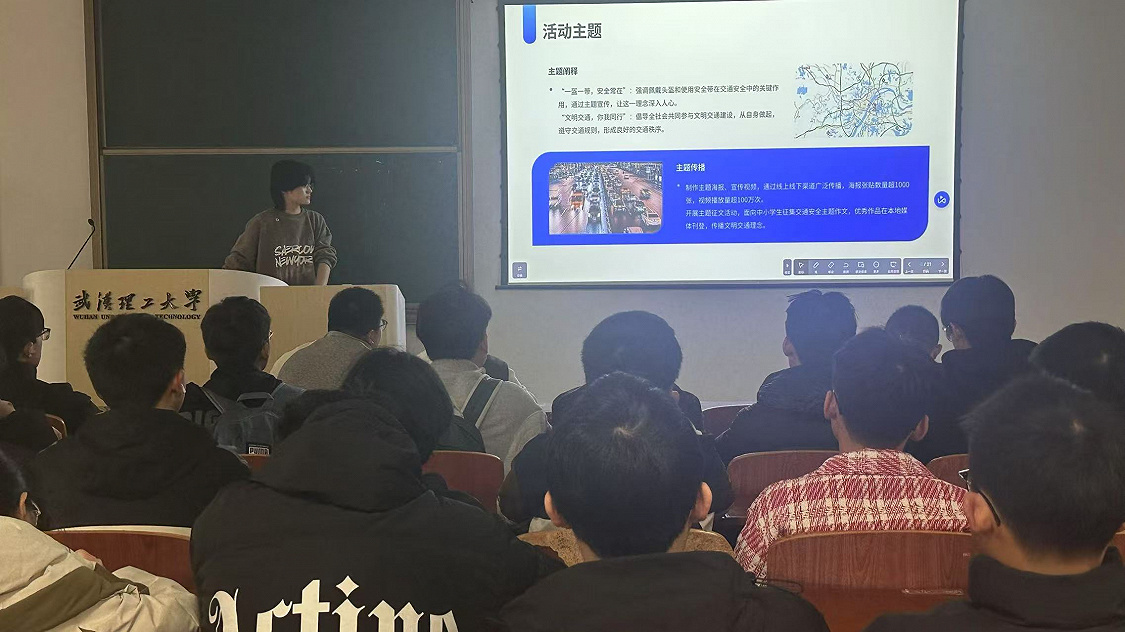 在春意盎然的三月,2025年3月13日自动化类2414班于鉴湖第三教学楼成功举办了以“黄鹤楼下路纵横,安步当车福汉城”为主题的实践交流会。本次交流会旨在通过同学们的亲身实践分享,深入了解武汉这座城市的交通发展脉络,感受其独特的城市魅力与文化底蕴。